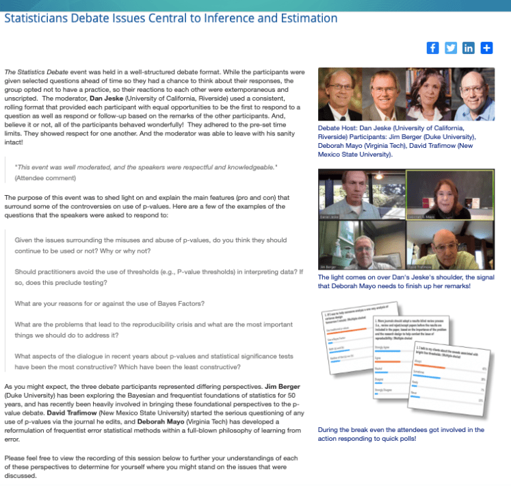 Want to get a sense of the thinking behind the practicality (or not) of various statistical approaches? Interested in hearing both sides of the story – during the same session!?